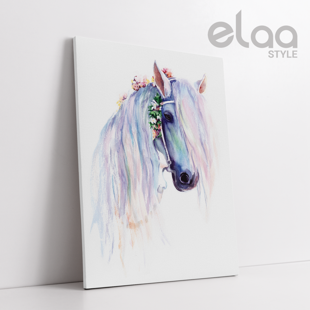 لوحة جدارية حصان أزرق و زهور خلفية باللوان مائية